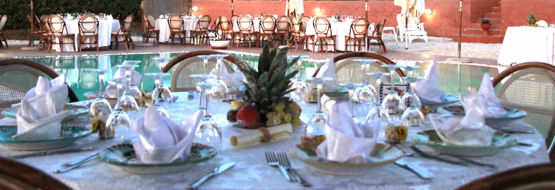 Di fianco si trova la piscina appena ristrutturata, sul bordo si può prendere il sole o mangiare freschi, nelle calde sere d’estate. L’area della piscina è spesso utilizzata per cerimonie, matrimoni e ricevimenti. Adiacente al casale c’è la depandance con le camere per i nostri ospiti e sull’altro lato, l’ampio parcheggio interno alla struttura. L’agriturismo, comprende oltre 10 ettari di vigneti con i quali produciamo gli ottimi vini della nostra cantina.